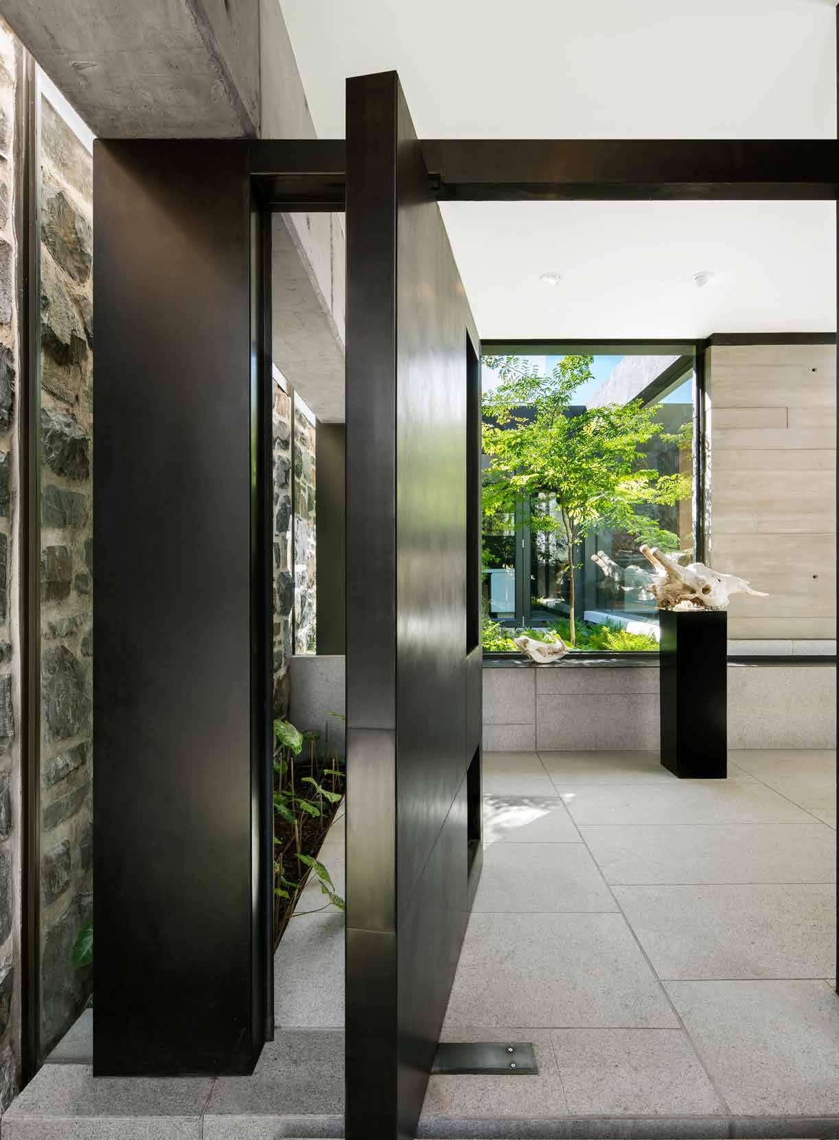 As you wind the curves of Kloof Nek, settling around the ankles of the mountain, overlooking the ebb and flow of the city’s suburbia, the ocean, its harbour, and all the way out to The Hottentots Holland Mountains in the distance, Cape Kloof Villa affirms itself as an architectural masterpiece amidst the mountain’s wilderness. Set on three levels of voluminous, avant-garde living, dining, lounging, entertaining and reclining spaces, this hideaway commandeers the slopes with poise, yet ever so discreetly tucks itself away from the city and its noise. Layered in signature art pieces, refined contemporary furnishings and mid-century antiques, bespoke lighting and linear spaces that are synergised by textures from off-shutter concrete, European oak, bronze and marble surfaces, granite flooring and Eastern Cape Blue Gum. The helm of the home rests on the top floor, as you enter through the sturdy steel entrance door, into the kitchen, dining and living space, with breathtaking views drawing you out over the swimming pool that spills into the city below. A secluded study and guest bathroom occupy a quiet corner that’s chaperoned by one of the many garden features in the home. Where glass escorts you outside to the ferns, the fynbos, the indigenous grasses, the Spekboom, the sub-tropical spots of green and light and external life. The koi pond down the first set of stairs suggests an Asian parody in an otherwise very African home. An impressive library with ample desk space for those wishing to work from home – as the new normal demonstrates – and a TV lounge sit centre stage to three en-suite bedrooms – including the master and its mammoth dressing room, walk-in wardrobe and mini spa. Down the final flight of stairs to a cinema room, a gym – overlooking a little urban farm for treadmill motivation – a laundry room, and an additional bedroom with separate bathroom.
