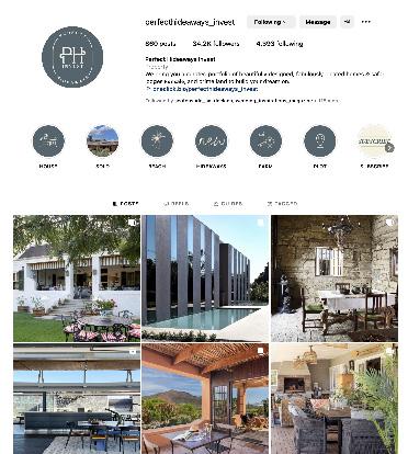 • Instagram – our Perfect Hideaways Invest account has a following of 30,000+