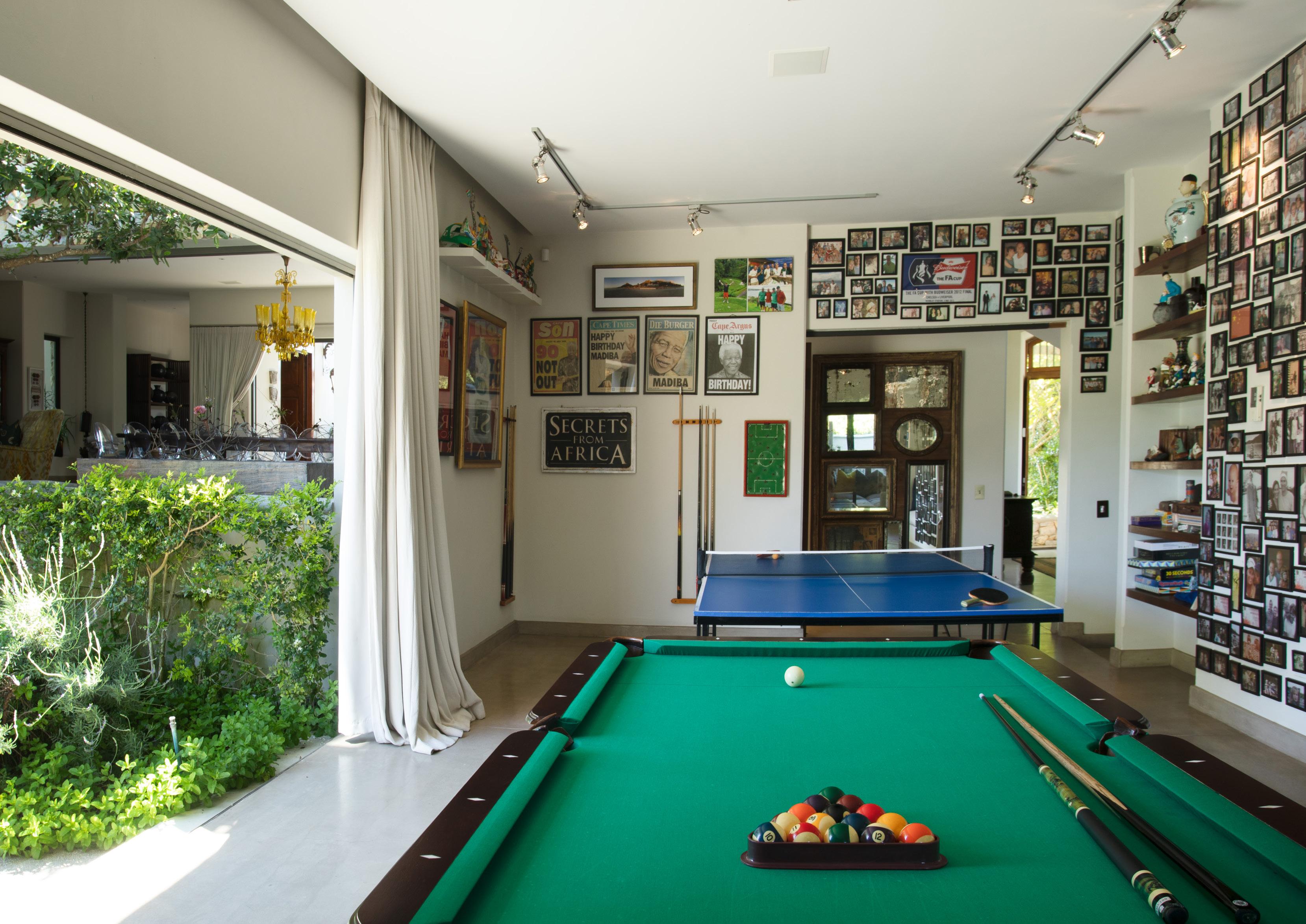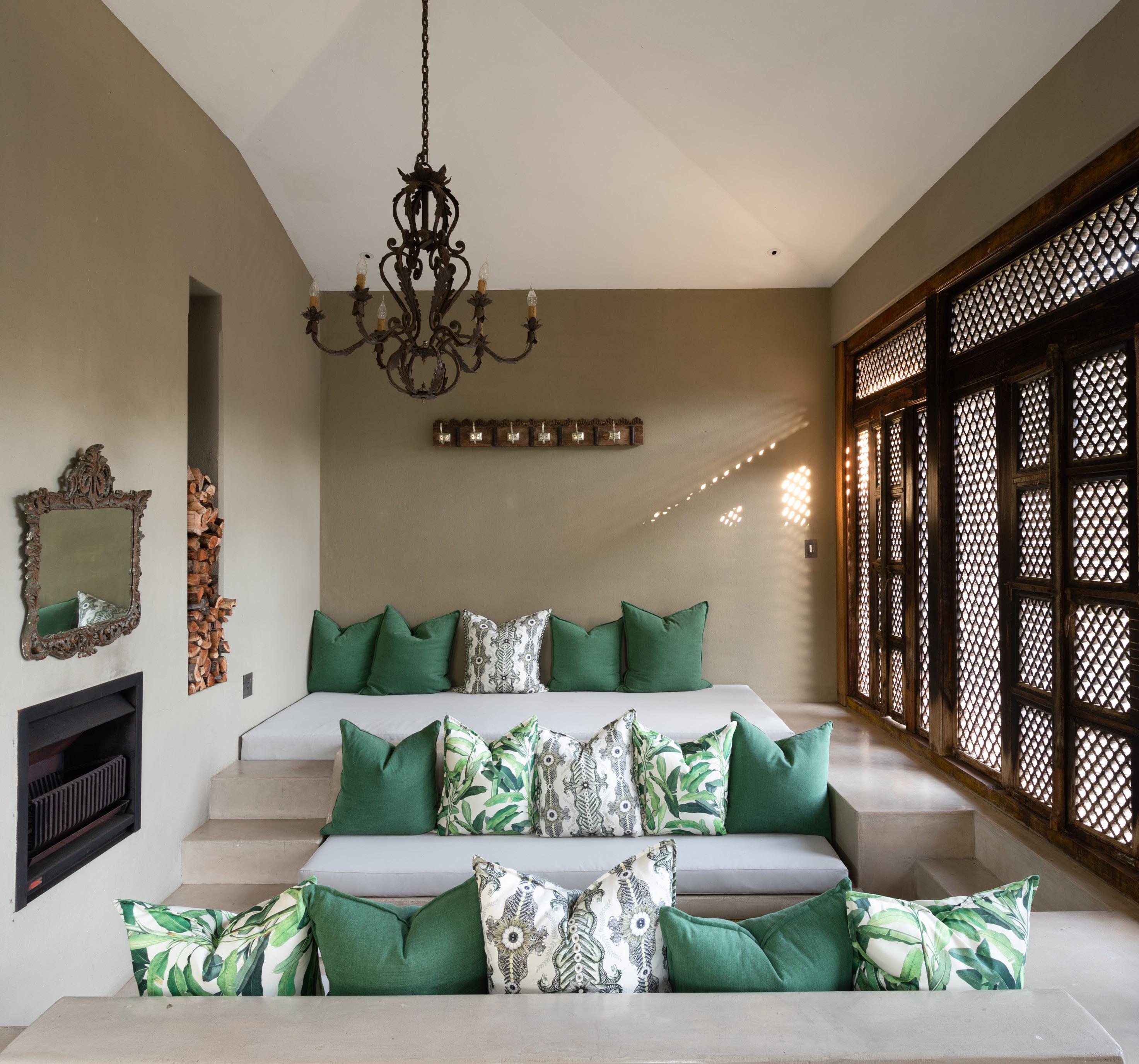 If you get the feeling that Kalu House overlooking Keurbooms Lagoon, may have once been a fort or ancient lodge, that’s just what the owners briefed in to the architects. But for all its solid stone walls, it is a modern home in all respects built with a single purpose: to create a warm, welcoming hub for a rather large family who loved nothing better than to celebrate the fabulous climate in the Plettenberg area no matter what the season. And while brothers and sisters, their children and extended family and friends gave the home its liveliness, the house too had its ‘visitors’. The owners collected superb pieces of furniture (several pieces custom-made for a room) and art from India, China, and Spain. It has given the home a wonderful depth of character and visual interest. The dining room table crowned by a splendid old gold and glass chandelier, seats twenty people, a hint that family meals here are more spontaneous celebration than just routine ‘food on the table’ events. It’s a room designed to open up to the exterior and to the old Milkwood trees on the property, their roots established long before the house foundations.