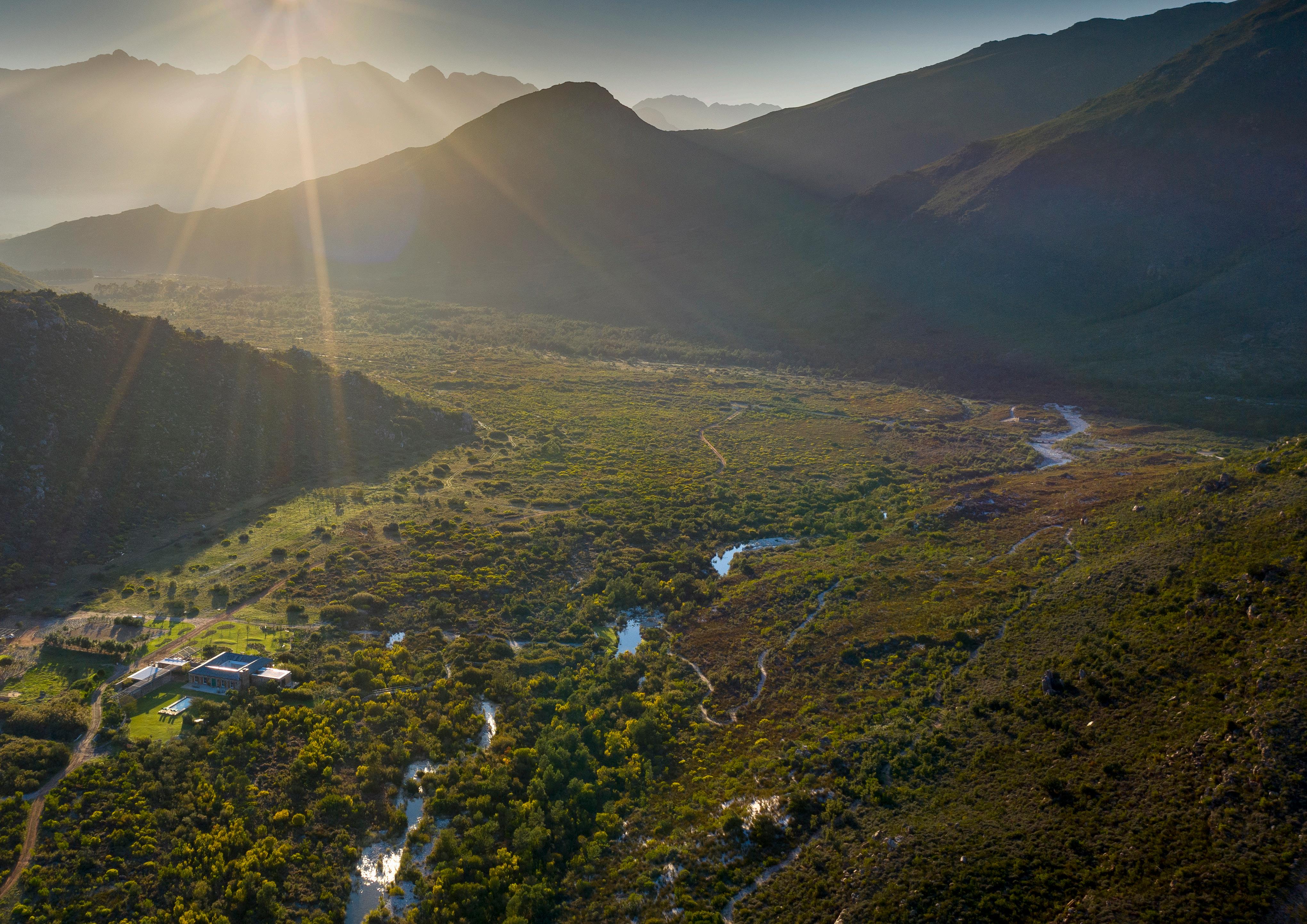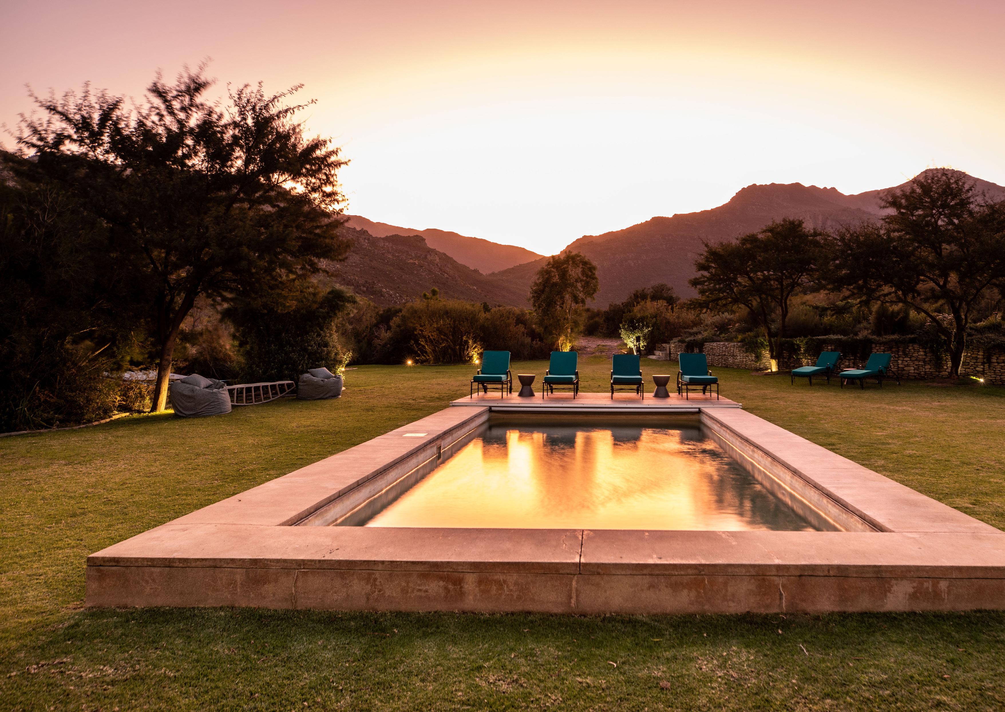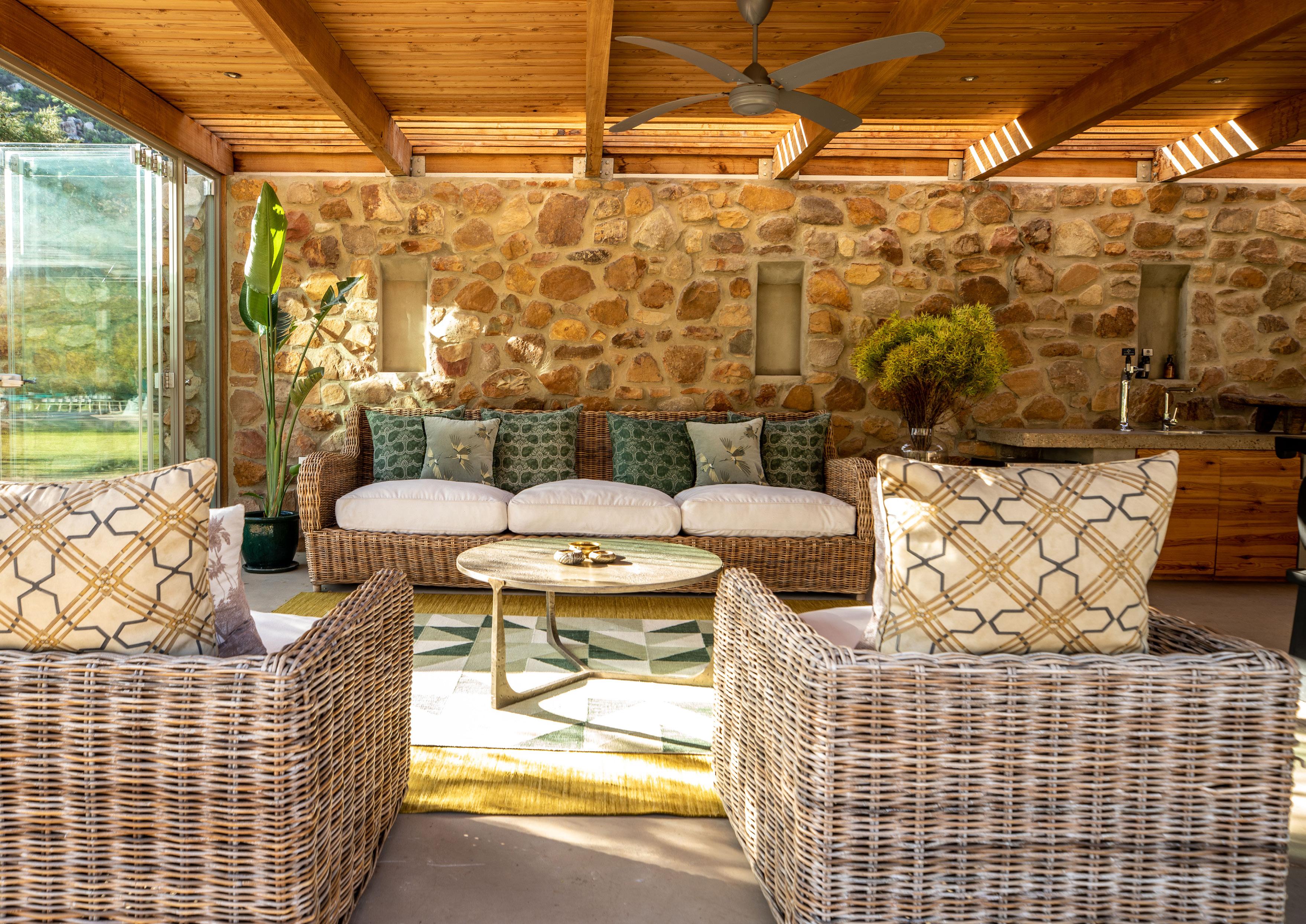 Settled around the ankles of the Bainskloof Pass mountains, on over 800-hectares of private reserve, in proximity to the Witte and Bastiaanskloof rivers, Kerala emerges from the soil it so reverently occupies and seamlessly synthesises with the abounding nature that surrounds. At the helm rests India House. Its consciously considered spaces pivot from the central Moroccan-inspired courtyard adjacent the main open-plan living and dining areas. Three en suite bedrooms and an additional childrens room for two disperse themselves down hallways where natural light floods through the tall windows. In keeping with the family’s ethos – that’s palpable in every aspect of the property – inspired by Ottolenghi’s cookbooks, the interiors and the tempo from which everything flows, is Simple, Plenty and Wholesome.