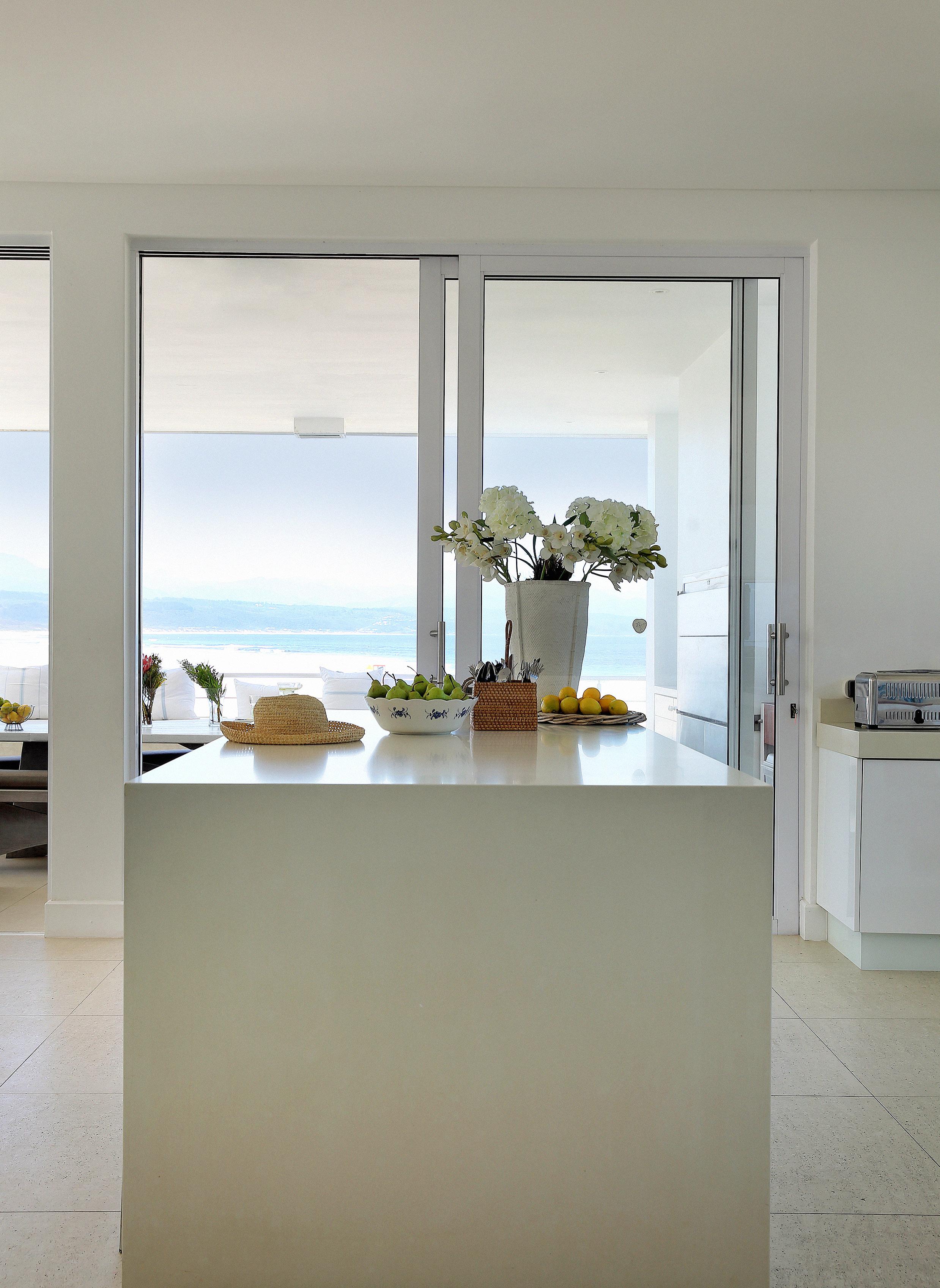 Unfussy and with plenty of metaphorical white space, the beach house is seamless indoor-outdoor living. Glass doors stack away and you can lounge on the patio and chat with those cooling in the pool or cooking in the kitchen. Seagulls may join in the banter, perched precariously on the lip of the pool.