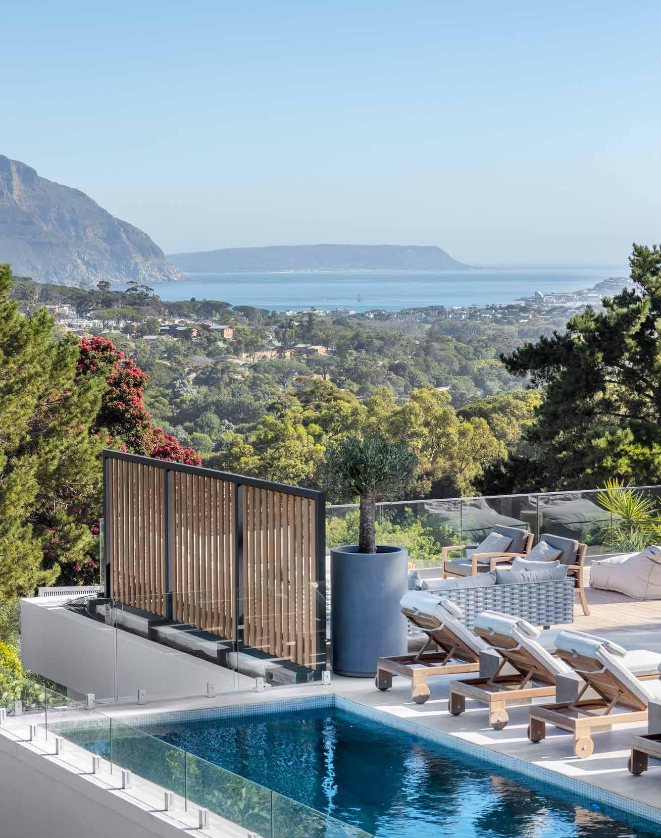 Arriving at Samadhi is like entering into a lavish, private sanctuary in one of Cape Town’s most diverse and scenic suburbs, just a short drive from some of the best beaches and finest vineyards. As you meander your way up the curved driveway, passing the lemon trees and lush gardens, you are immediately whisked away with its tranquility. Cushioned into the backside of table mountain, emerging from the pine forests and natural fynbos, overlooking the majestic Constantiaberg mountain range and rolling valley below, this hideaway hints at being your very own hotel, in the hills of Hout Bay.