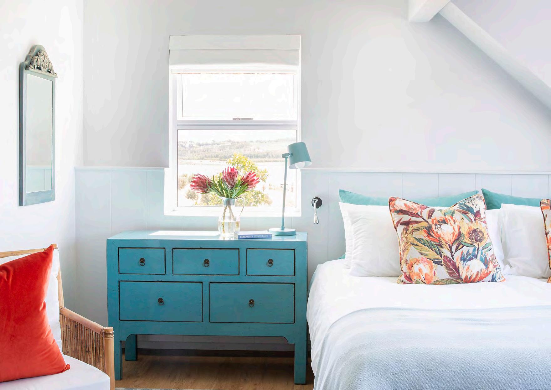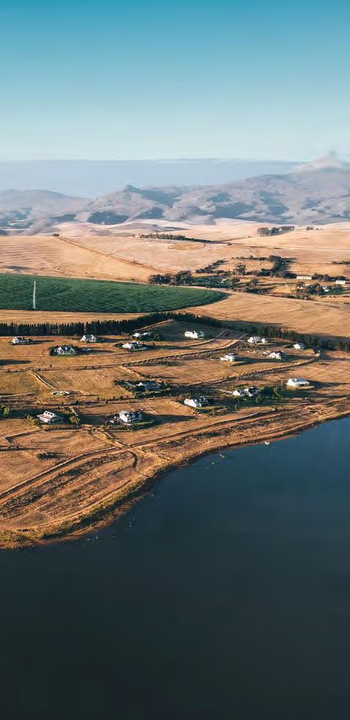 ‘It’s absolutely magic here,’ says Sue Lederle, who fell in love with this waterside location when her partner Gavin Rhodes-Harrison brought her out to the 32ha Gloria Bay Estate on Theewaterskloof Dam in the Overberg, to see it for the first time. Originally purchased in 2012, but having been rebuilt after a fire, it’s their dream home, one they’ve worked together on as a team and is now for sale. ‘In fact, being on the water sometimes feels like the Italian countryside I love so much. It’s like Lake Como on star-lit evenings, with the lights twinkling across the water and valley beyond,’ says Sue.