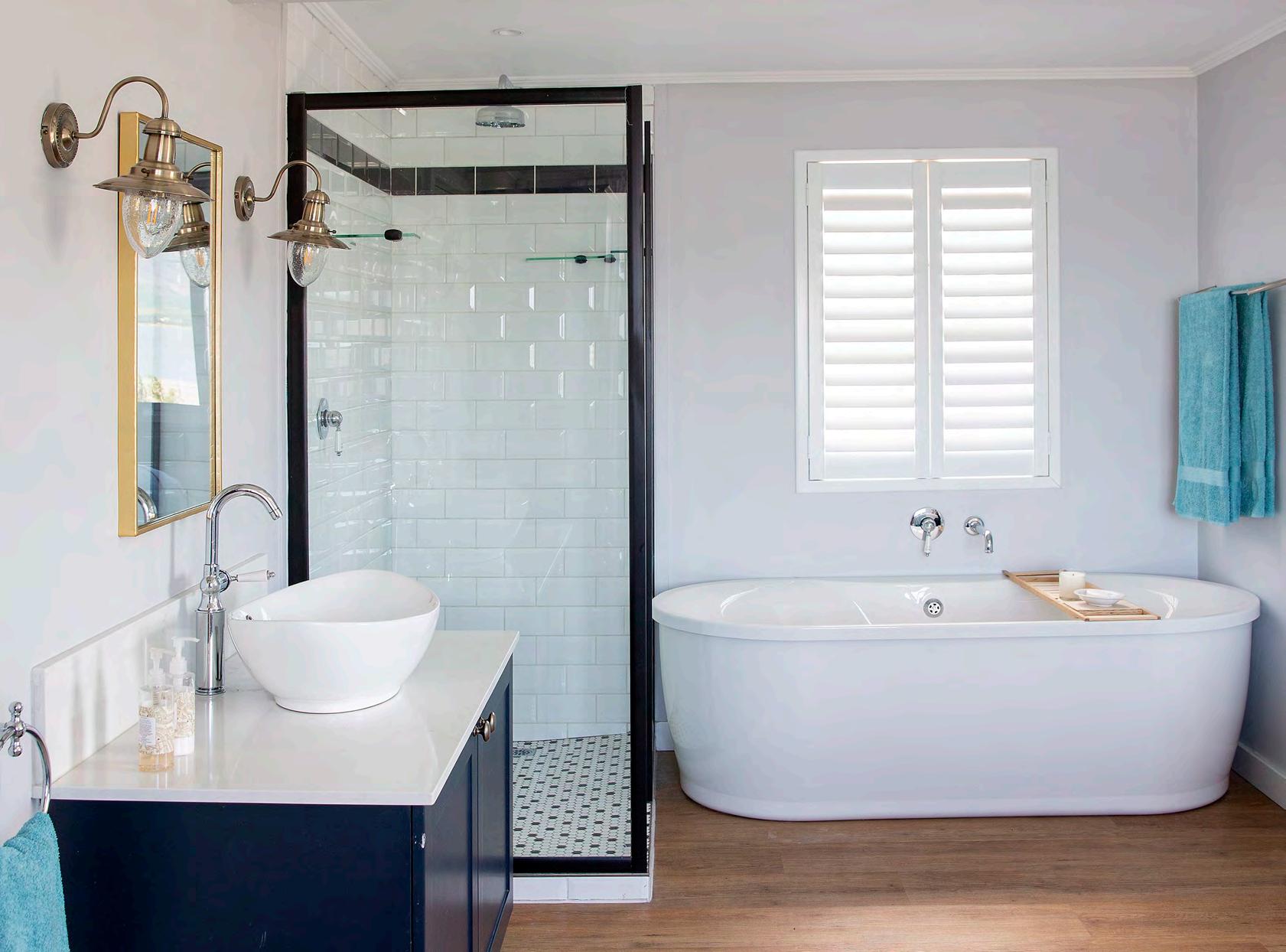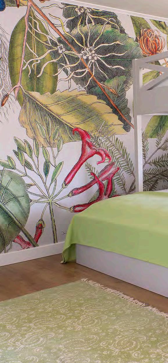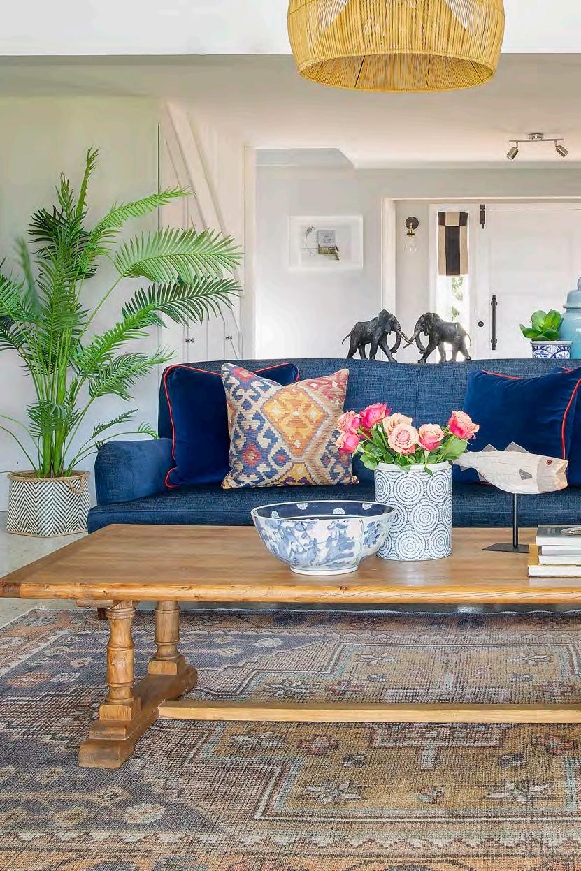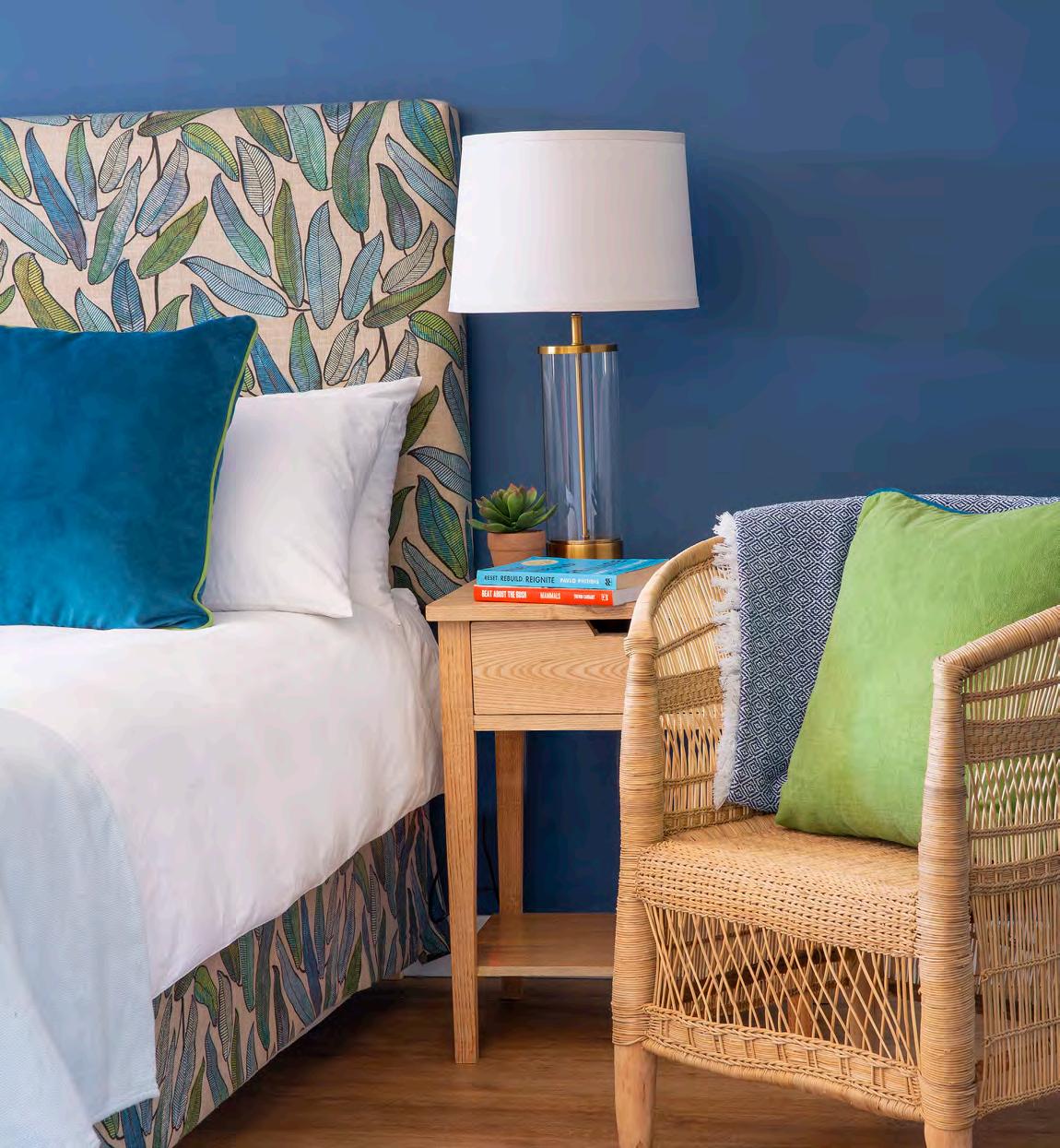 Inspiration for the sophisticated Hampton’s-style design of The Lake House came from Gavin’s home in New Orleans, and years spent recently in Louisiana. It’s also in keeping with the Cape Cod architectural style of the estate, and extremely well insulated and with immaculate finishes. Inside its modest blue-grey walls, it’s infused with colour, Sue’s signature style but patterned wallpapers, herringbone tile detailing and superb design touches were fun to choose together as a team.