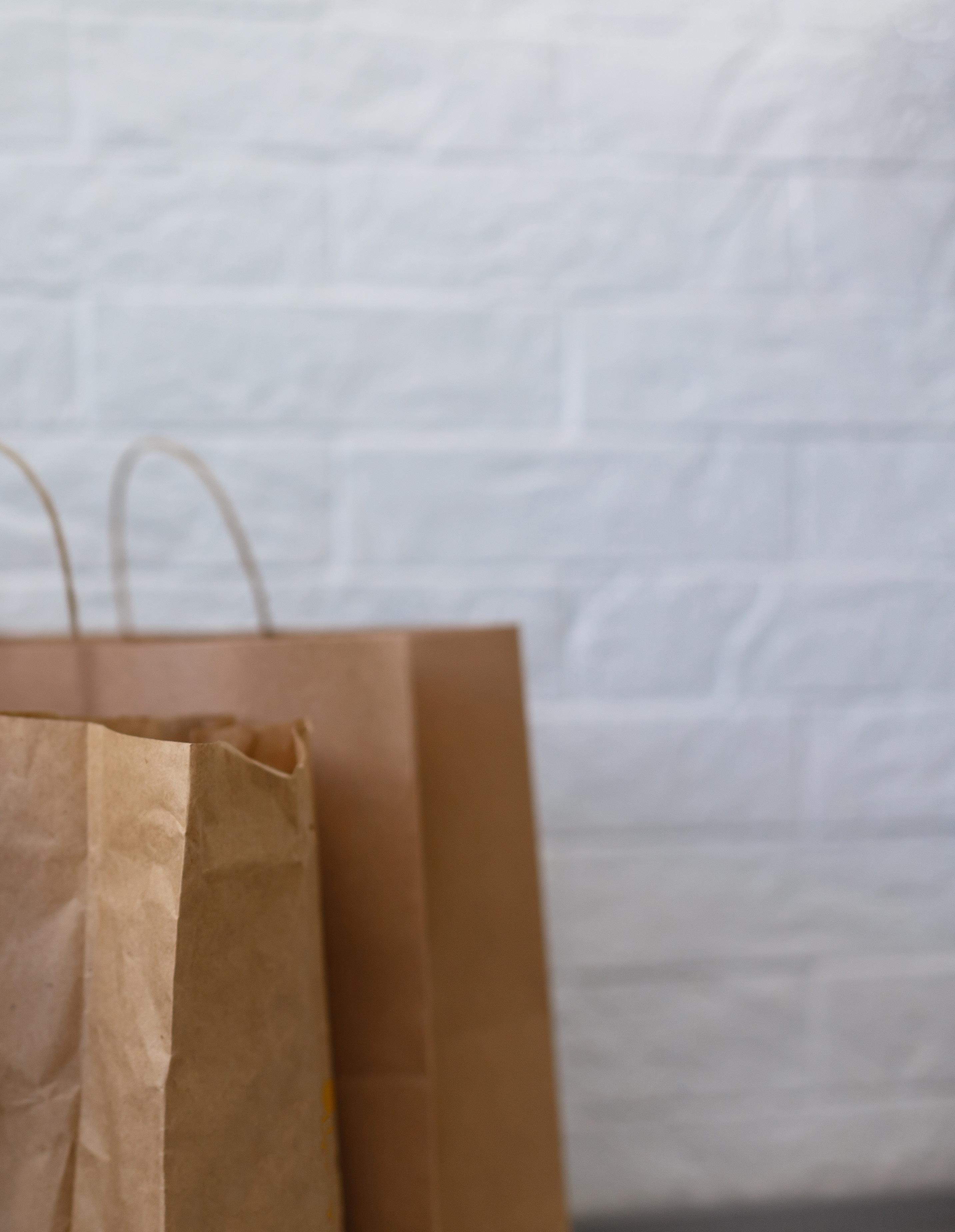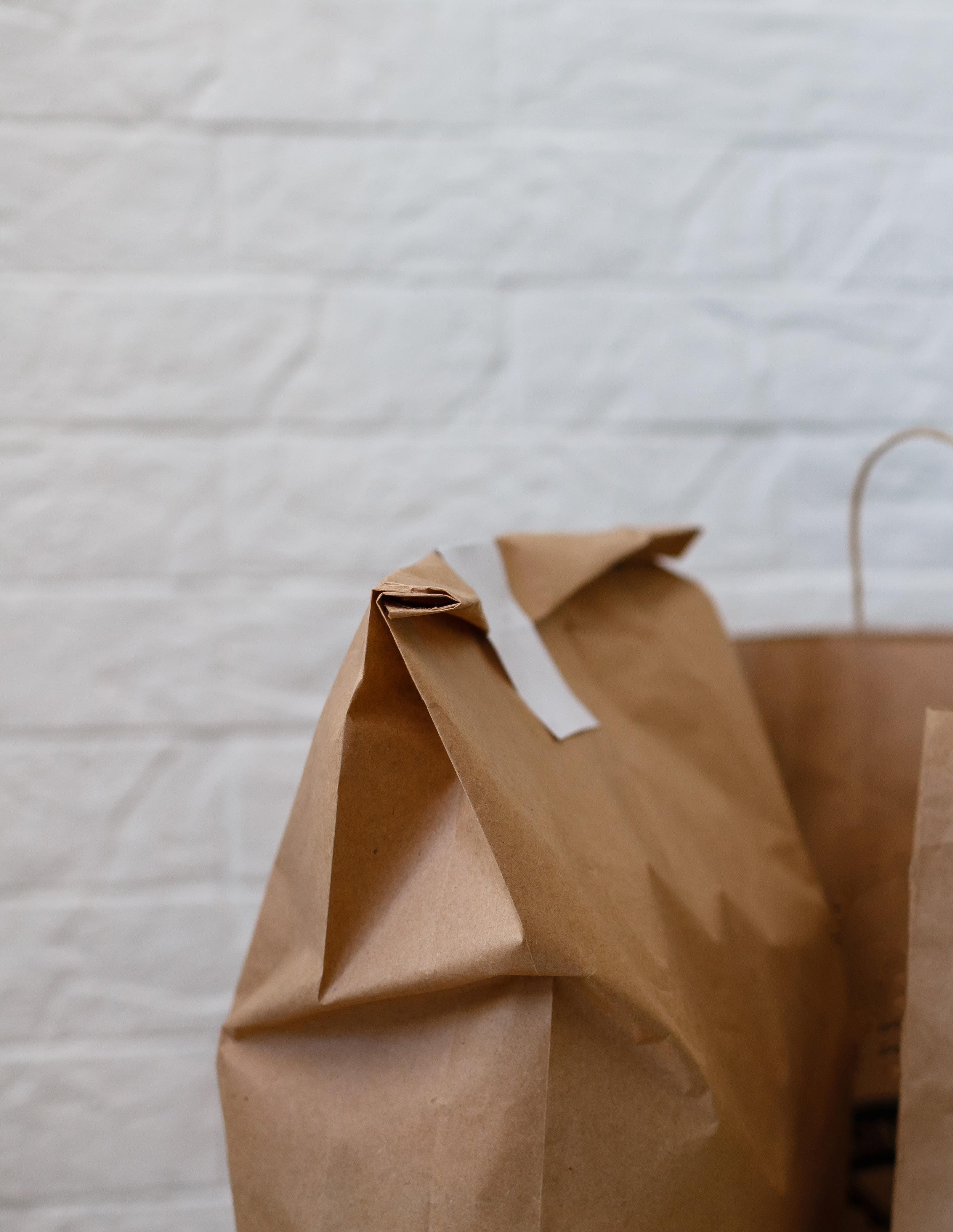 Paper Bags are often made with a percent or partial recycled content. Plastic Take out Bags can not be recycled, they actually inhibit the recycling process.