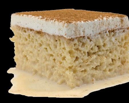 A tender cake delicately soaked with three luscious milks — evaporated milk, condensed milk, and cream — then covered with a white satiny cream topping. pre-scored
