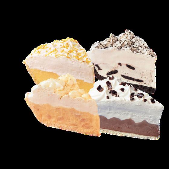 Chef Pierre Pie Variety Pack, Unsliced, Thaw & Serve, Banana, Chocolate, Coconut, and Cookie Cream #65868 • 1/4 count (10")