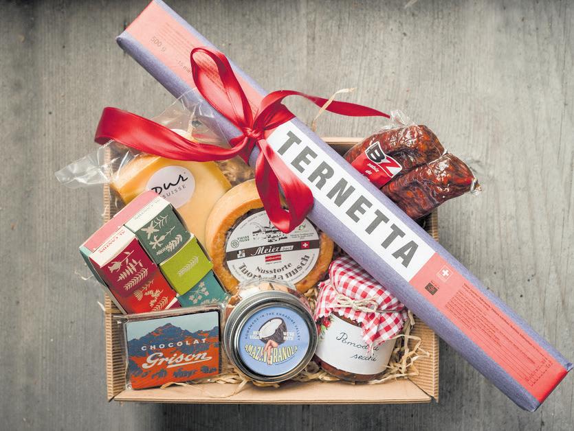 Den Geschmack Graubündens schenken: Manche der Geschenkkörbe sind thematisch nach Talschaften sortiert, andere vereinen das Beste aus dem Kanton.