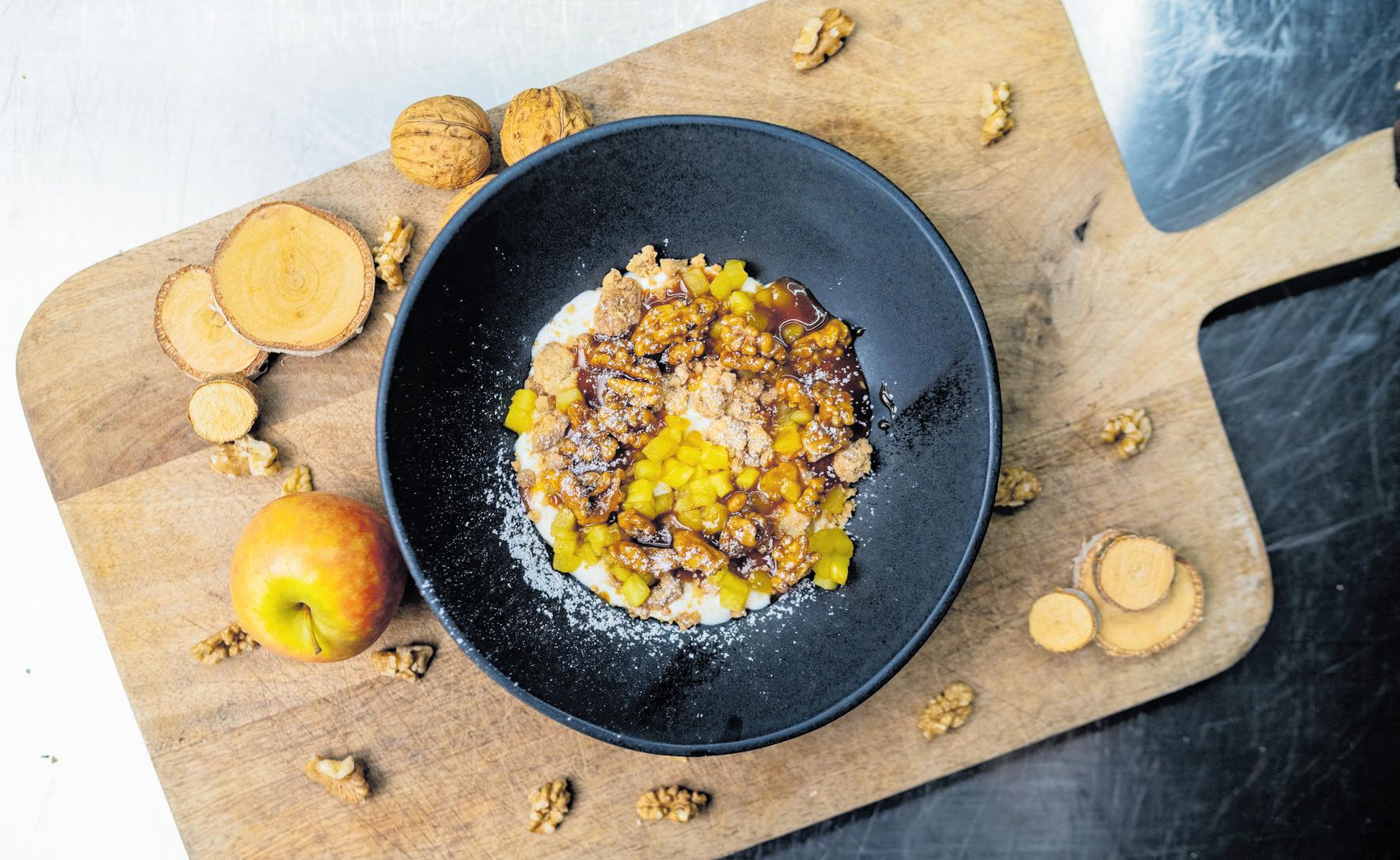 11 Apfelcrumble mit Baumnüssen und Joghurt
