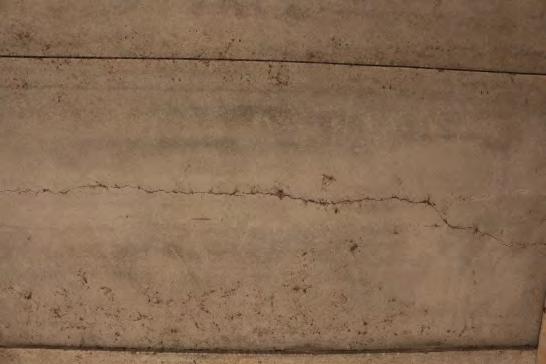 Le foto mostrano fessure diagonali in solette in c.a.. Le fessure si estendono per il 50% della lunghezza significativa di queste solette, qui mostrate solo parzialmente. È stata pertanto assegnata estensione k1=0.5