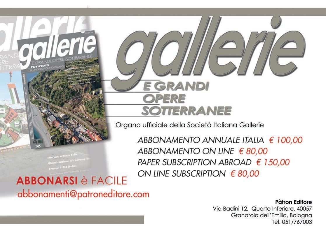 Periodico trimestrale, riconosciuto dal C.N.R. della Società Italiana Gallerie – Italian Tunnelling Society – Member of ITA/AITES