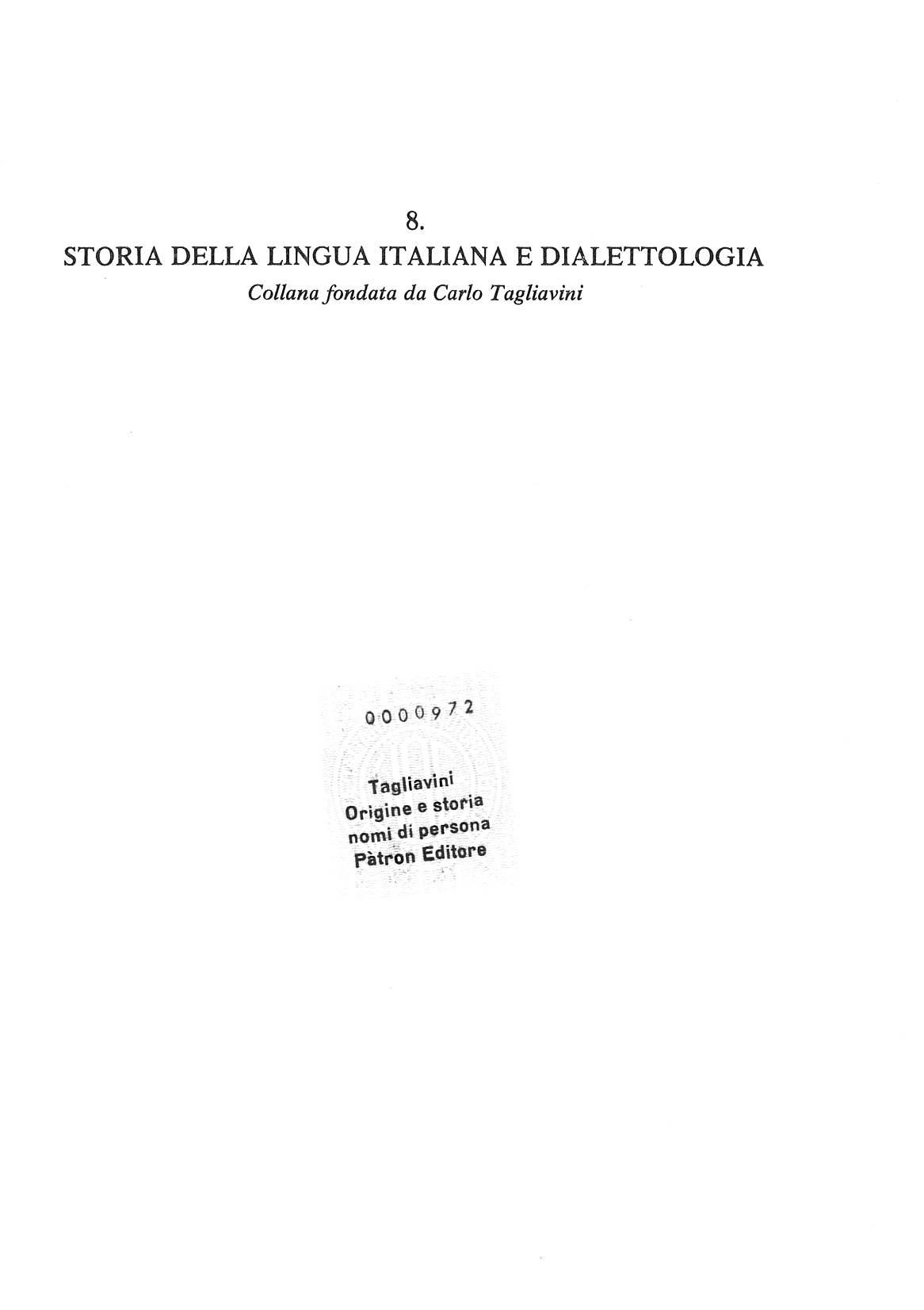 Origine e storia dei nomi volume II