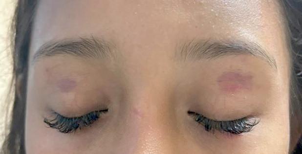 › LA JOVEN, DE IDENTIDAD RESERVADA, MUESTRA LAS SECUELAS DE LOS GOLPES CON LOS PUÑOS QUE RECIBIÓ EN LA CARA A MANOS DE SU EX NOVIO, EN LA DISCOTECA D’CAVE.