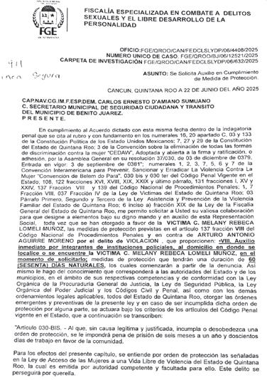 › LA FISCALÍA DE DELITOS SEXUALES INTEGRÓ LA CARPETA DE INVESTIGACIÓN FGE/QROO/CAN/ FEDCCMYRG/11/2686/2024, POR LOS DELITOS DE FEMINICIDIO EN GRADO DE TENTATIVA, VIOLACIÓN, LESIONES Y ROBO.