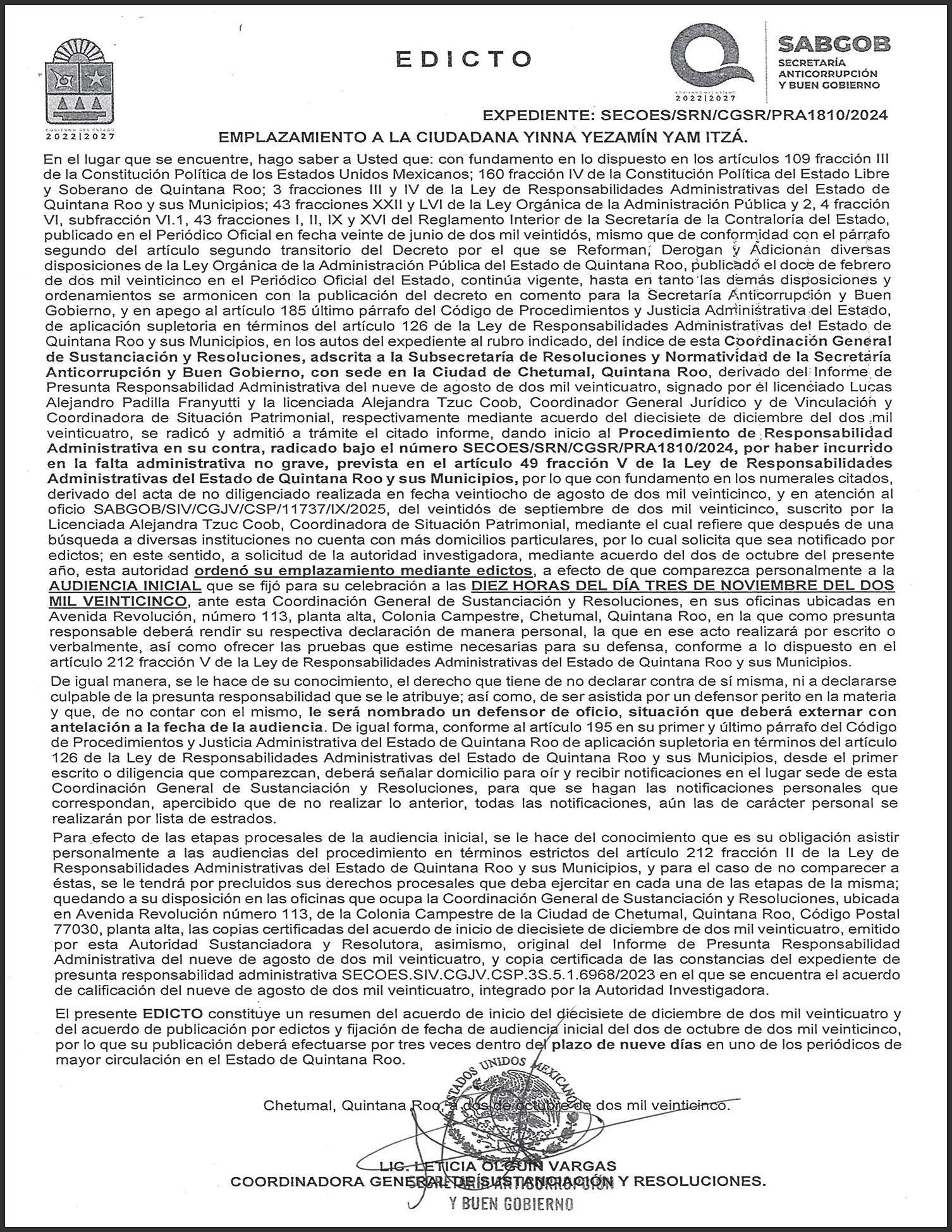 DICTA AUTO DE VINCULACIÓN EN TULUM.