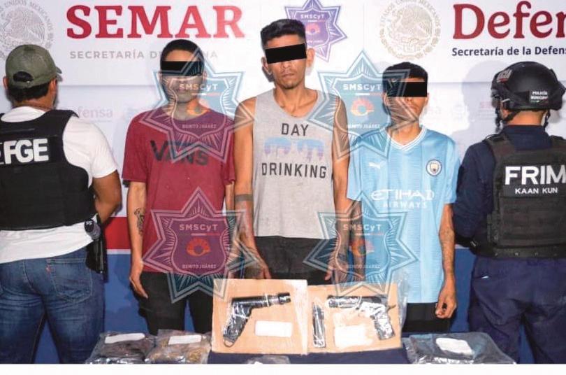 Narcomenudeo. Tres hombres fueron detenidos durante el operativo de Blindaje Cancún en la Región 251 de Cancún por presunto narcomenudeo. Se les aseguraron marihuana, cristal y armas.