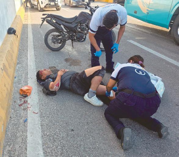 El accidente ocurrió a las 9:10 horas de este martes, en el bulevar Luis Donaldo Colosio, justo en la entrada del poblado Alfredo V. Bonfil, hasta donde llegaron elementos de la Dirección de Tránsito encontrando al motociclista lesionado.