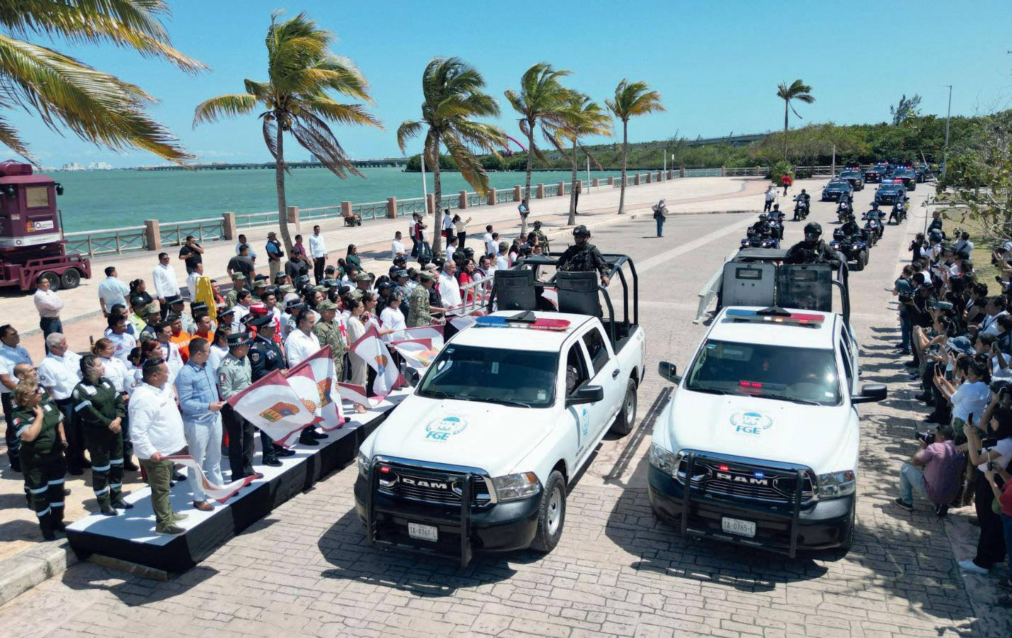 Servicios. En Quintana Roo se dio el banderazo de salida a las unidades que se encargarán de la vigilancia de los locales y visitantes durante la Semana Santa y Pascua. GOBIERNO