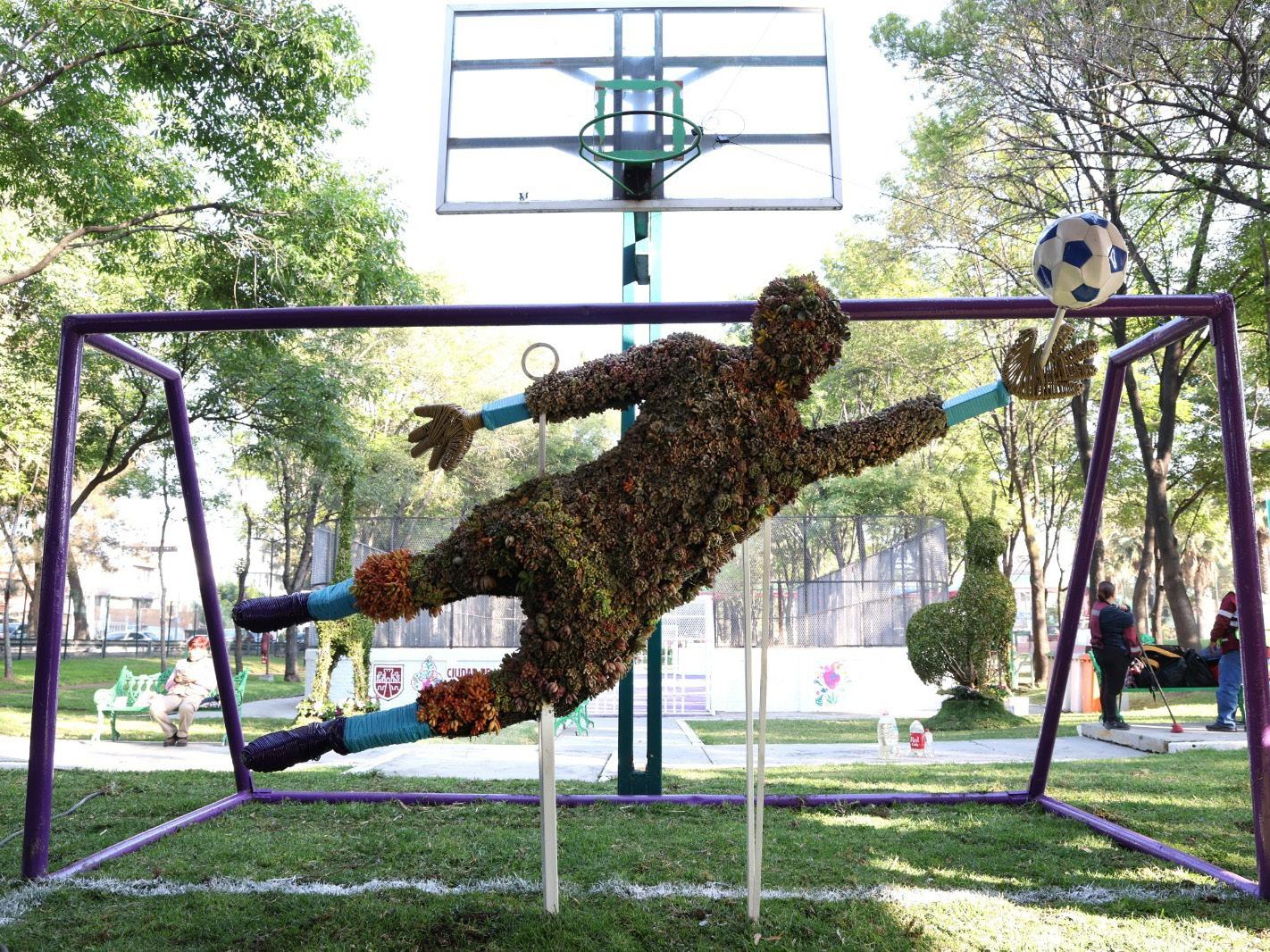son elaboradas por trabajadores de servicios urbanos utilizando plantas suculentas, con diseños alusivos al Mundial y a la identidad capitalina, como balones, camisetas de futbol y ajolotes.