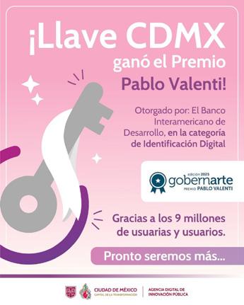referente tecnológico en términos regionales. Así, la implementación de una identidad digital sólida y confiable permite construir una infraestructura que beneficie tanto a la administración pública como a la ciudadanía, facilitando el desarrollo de políticas más inteligentes. En palabras de Ángel Tamariz Sánchez, titular de la Agencia, este premio es una respuesta a los esfuerzos realizados interinstitucionalmente en la CDMX para construir una ciudad más moderna: “Este reconocimiento refuerza el compromiso de la Ciudad de México con la innovación tecnológica, la inclusión digital y la mejora continua de los servicios públicos. Llave CDMX representa un modelo replicable para otras ciudades que buscan avanzar hacia una gobernanza digital, segura, humana y accesible”.