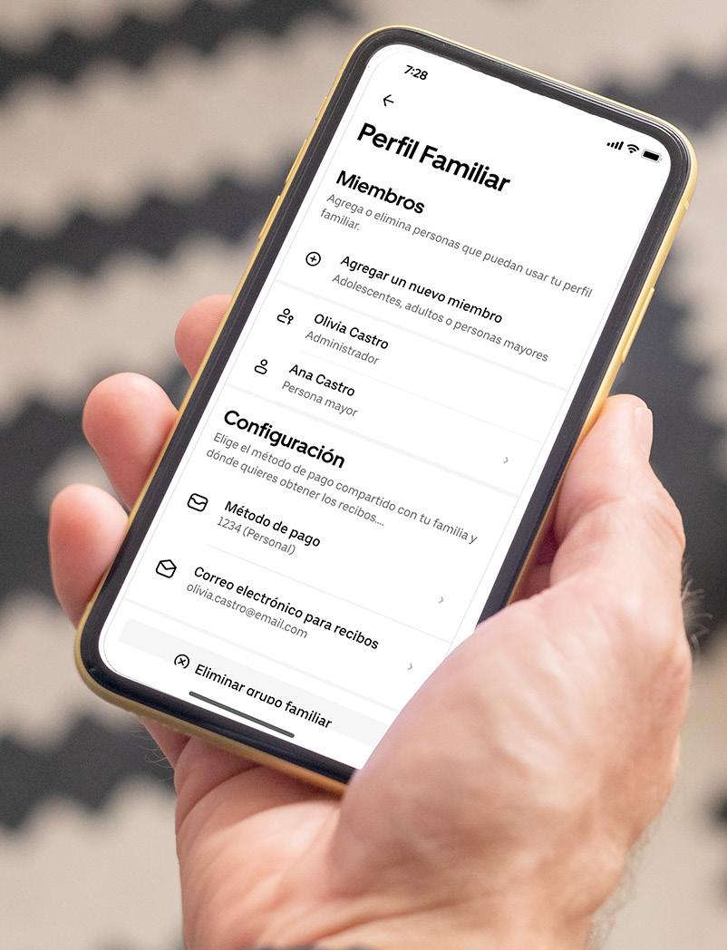 › Quien administre el perfil familiar puede ayudar a organizar viajes, gestionar métodos de pago y seguir el recorrido.