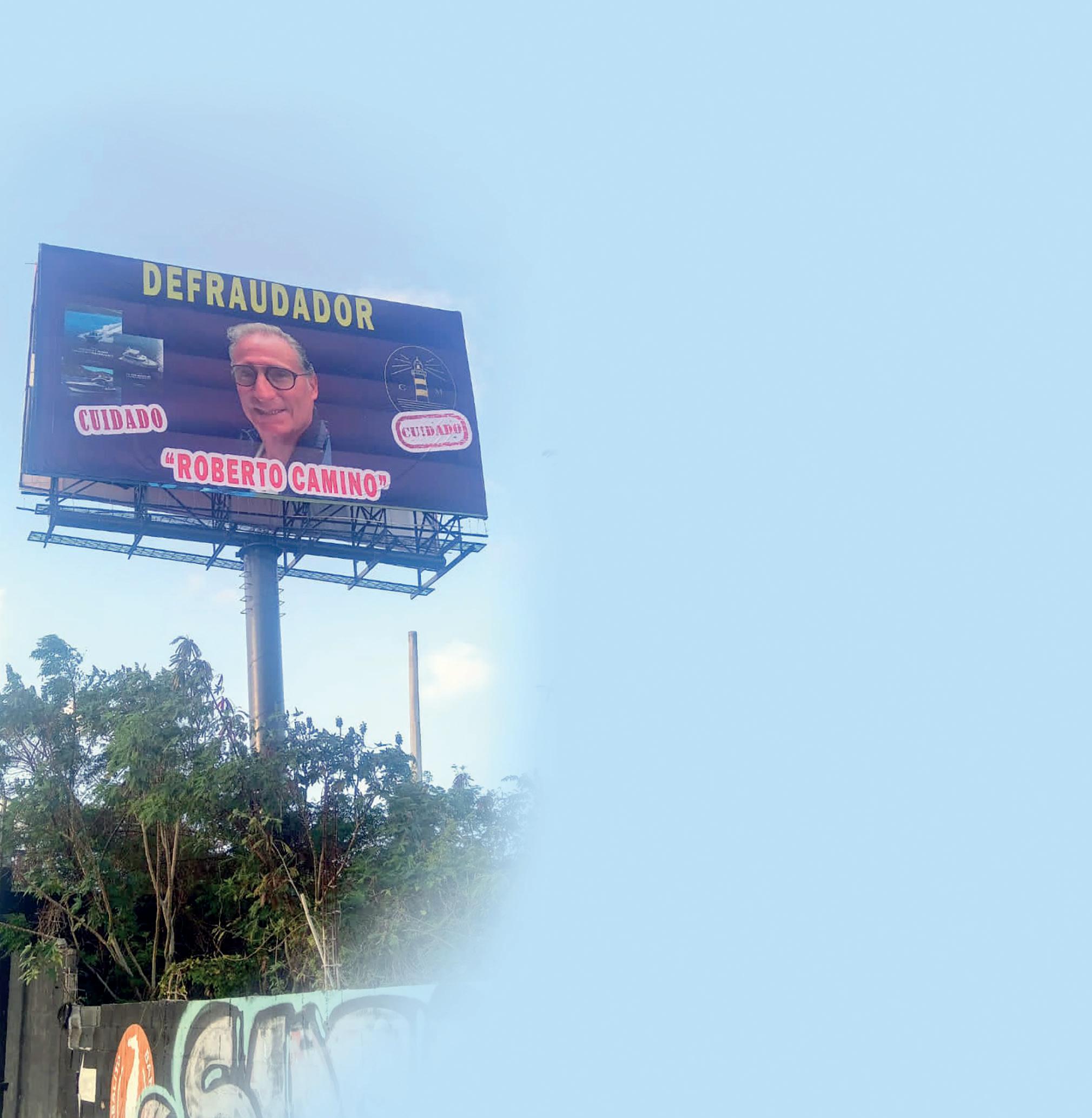 APARECIÓ EN CANCÚN UN ESPECTACULAR, DONDE EXHIBEN A ROBERTO CAMINO, SEÑALÁNDOLO COMO DEFRAUDADOR Y ADVIRTIENDO A LA CIUDADANÍA QUE TENGA CUIDADO AL HACER NEGOCIOS CON ÉL. DATO