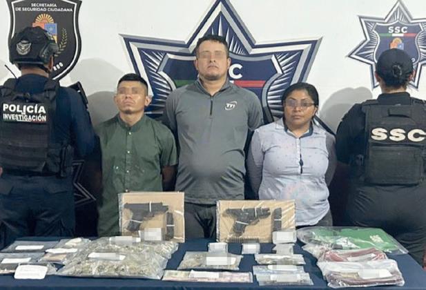 › Jahaziel “N”, Carlos Abelardo “N” y Lizbeth “N” tenían en posesión más de 200 dosis de drogas y dos armas.