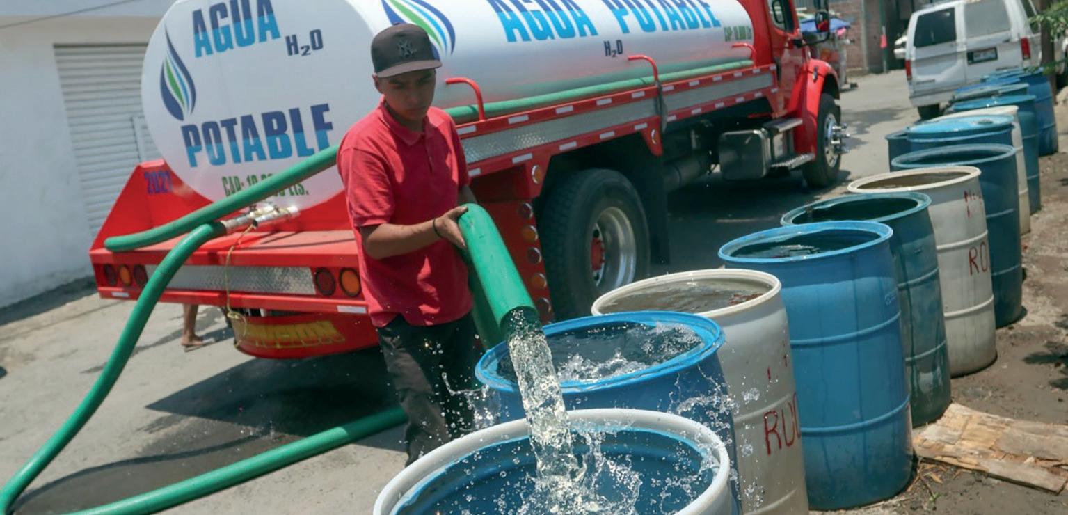 › Pipas de agua abastecen a los vecinos de Cuajimalpa que están siendo afectados por la temporada de estiaje.