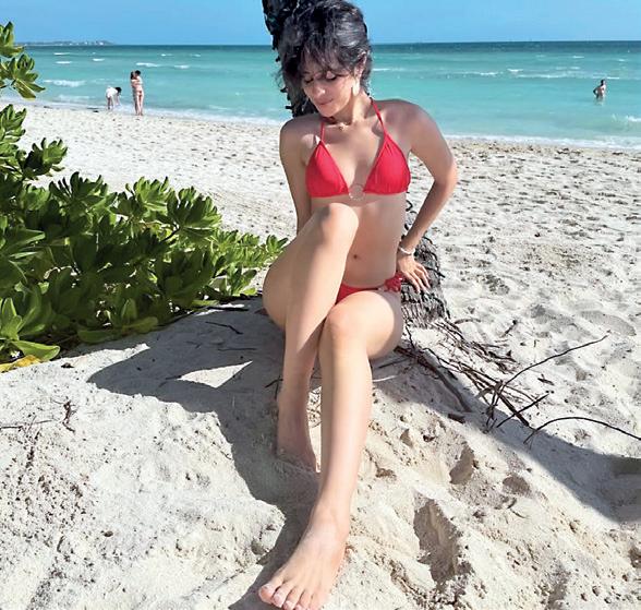 La cantante Camila Cabello deslumbró en su cuenta de Instagram al posar en bikini en una playa paradisíaca de agua turquesa. Irradió belleza ataviada con un diminuto bikini rojo mientras se recostaba bajo una palmera.