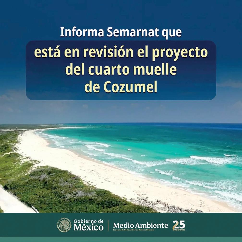Tras la movilización de grupos ambientalistas, empresarios, organizaciones civiles y diversas autoridades de los tres niveles de Gobierno, que se han pronunciado en contra del cuarto muelle para cruceros en Cozumel, la Semarnat hizo del conocimiento público que está en revisión el proyecto y que iniciará una revisión del resolutivo en materia de impacto ambiental, luego de una impugnación recibida por parte de vecinas de la isla.