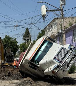 Un camión que transportaba tierra volcó en la calle 325 en la colonia Nueva Atzacoalco de la Alcaldía GAM. Se lo ‘tragó’