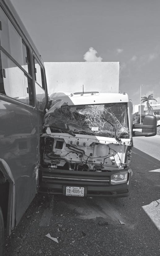 La persona antes mencionada chocó con un Autobús rojo, con placas A73603T de Q. Roo, marcado con el número 801, conducido por Gérard Dolores C.C. de 47 años.