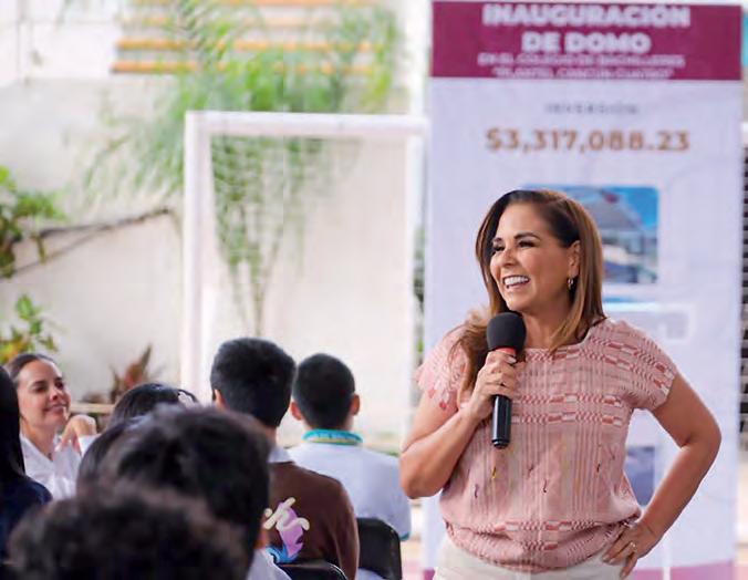 Alumnas y alumnos de la escuela secundaria general “8 de Marzo” de Cancún recibieron de la gobernadora Mara Lezama el nuevo domo recién construido y que fue solicitado durante una visita anterior, y cuyo compromiso cumplió, como lo hizo anteriormente con la rehabilitación de aulas.
