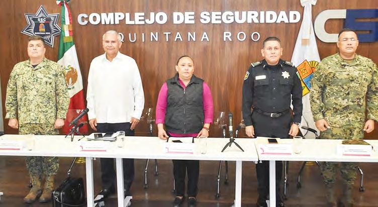 En la conferencia de prensa estuvieron presentes también la secretaria de Gobierno, Cristina Torres Gómez; el contralmirante Julio César Gómez Torres, secretario de Seguridad Ciudadana; el contralmirante Juan José Zamorano Martínez, comandante de la Quinta Región Naval; y el general Claudio Edmundo Huizar, comandante de la Guarnición Militar Cancún.