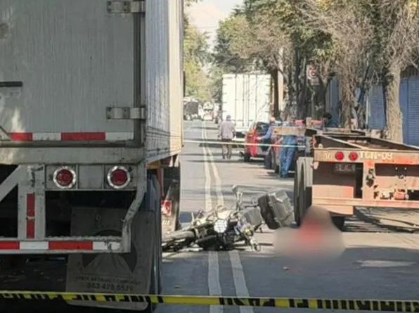 Testigos señalaron que el conductor del tráiler no se percató de que el motociclista había quedado debajo de la unidad.