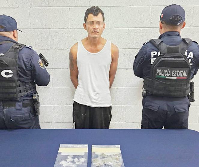 de lo sorprendieron manipulando bolsas con sustancias sospechosas. Tras revisar, se le encontraron diez dosis de hierba seca, presumiblemente marihuana, y trece bolsitas con fragmentos sólidos similares al cristal. Fue turnado a la Fiscalía General del Estado (FGE) por delitos contra la salud. En otro operativo, la FGE con apoyo del Ejército Mexicano ejecutó una orden de cateo en una