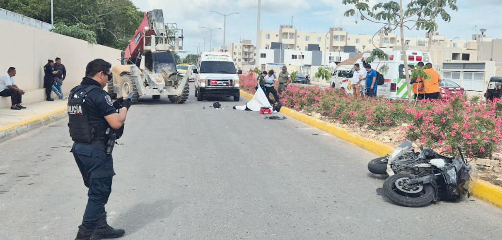 Un joven motociclista murió la mañana de este jueves en un aparatoso accidente ocurrido en la avenida Girasoles, en la Supermanzana 249 de Cancún, tras impactarse contra una maquinaria pesada que, según reportes preliminares, le cerró el paso.