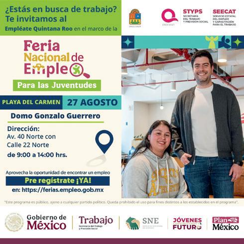 Con la participación de más de 25 empresas, la Tercera Feria Nacional del Empleo con sede en Cancún puso a disposición de los buscadores de empleo alrededor de mil 200 vacantes en diferentes sectores, informó Tayde Rojas, coordinadora del Servicio Estatal de Empleo y Capacitación para el Trabajo en Quintana Roo (Seecat).