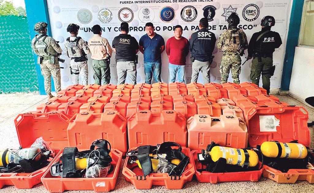 Al momento de su detención, a los detenidos les fueron asegurados un total de 30 equipos de respiración autónoma robados durante el asalto a la plataforma de Pemex, además de una embarcación pe-