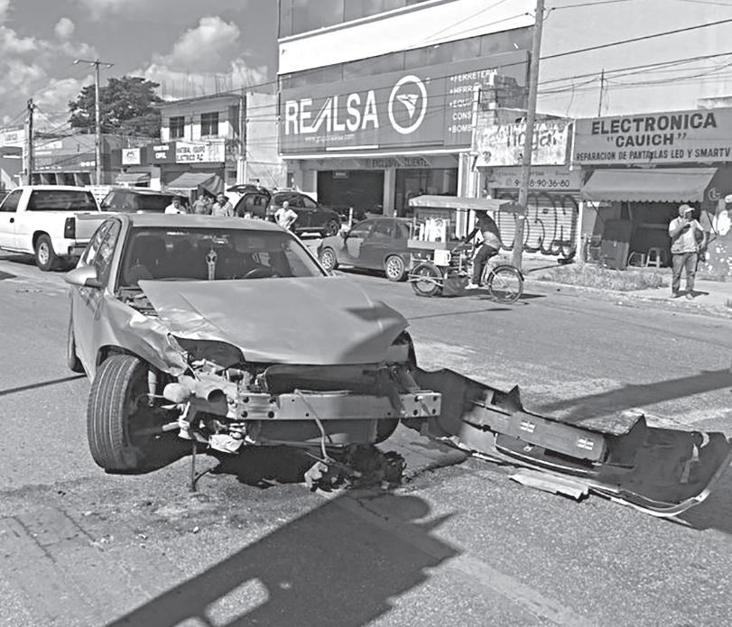 Accidente. Una mujer en un Chevrolet tipo Malibú sobre la avenida Portillo en Cancún, chocó con una camioneta Ranger Rover frente al Little Caesars. Ambos conductores se pasaron el rojo y decían tener la luz verde.