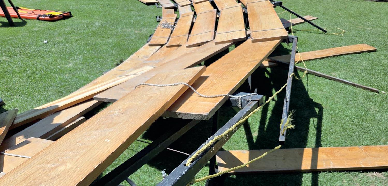 familiares y acompañantes; sin embargo, el templete no resistió el peso y se derrumbó, por lo que los estudiantes cayeron en efecto dominó.