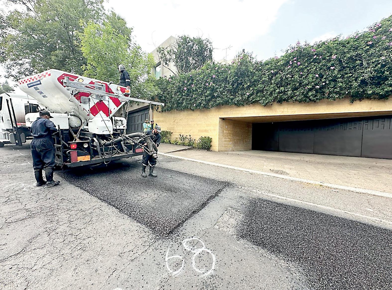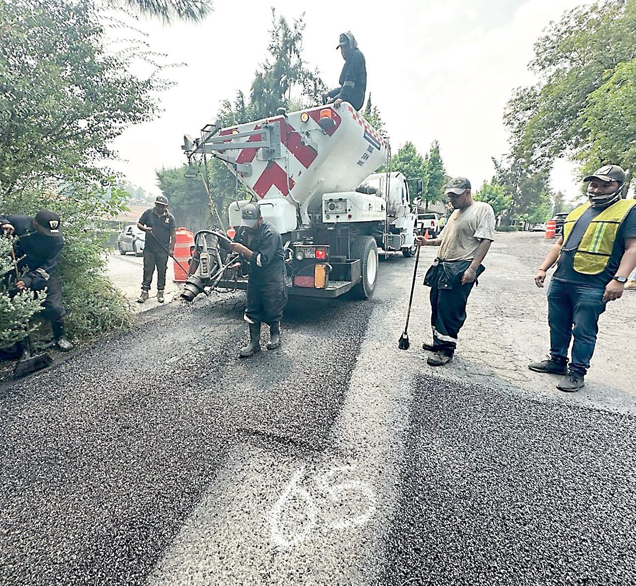 › El programa de bacheo avanza en Cuajimalpa con maquinaria especializada.