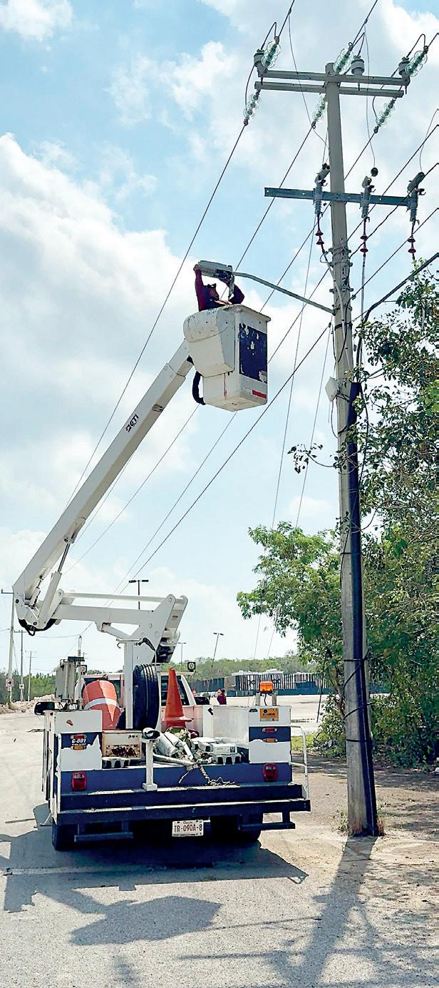 Una cuadrilla del área de Alumbrado Público del Ayuntamiento de Benito Juárez, con apoyo de una grúa de la Secretaría de Seguridad Ciudadana, instalaron ayer jueves 13 luminarias en el acceso al Poliforum Cancún para garantizar la seguridad de los aficionados que asistan a la gala boxística del sábado y que este camino también siga iluminado durante los partidos de baloncesto del equipo El Calor de Cancún.