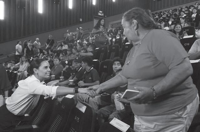 “En Cancún no toleramos el delito de trata de personas y estamos trabajando todos los días para erradicarlo por completo, pero necesitamos más ojos, oídos y estar pendientes de cualquier signo de alerta donde se pueda actuar de manera inmediata, trabajando en equipo con las autoridades”, subrayó la Presidenta Municipal, Ana Paty Peralta, al entregar el distintivo “Corazón Azul” a la cadena Cinépolis, por haber capacitado a 192 colaboradores para sumarse a la protección de niñas, niños y adolescentes de posibles actos que vulneren su integridad.