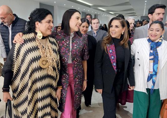 › Ana Paty Peralta, Blanca Merari, Mary Hernández, Atena Gómez, la mandataria estatal, José Luis Chacón, Estefanía Mercado y Bernardo Cueto, titular de la Sedetur.