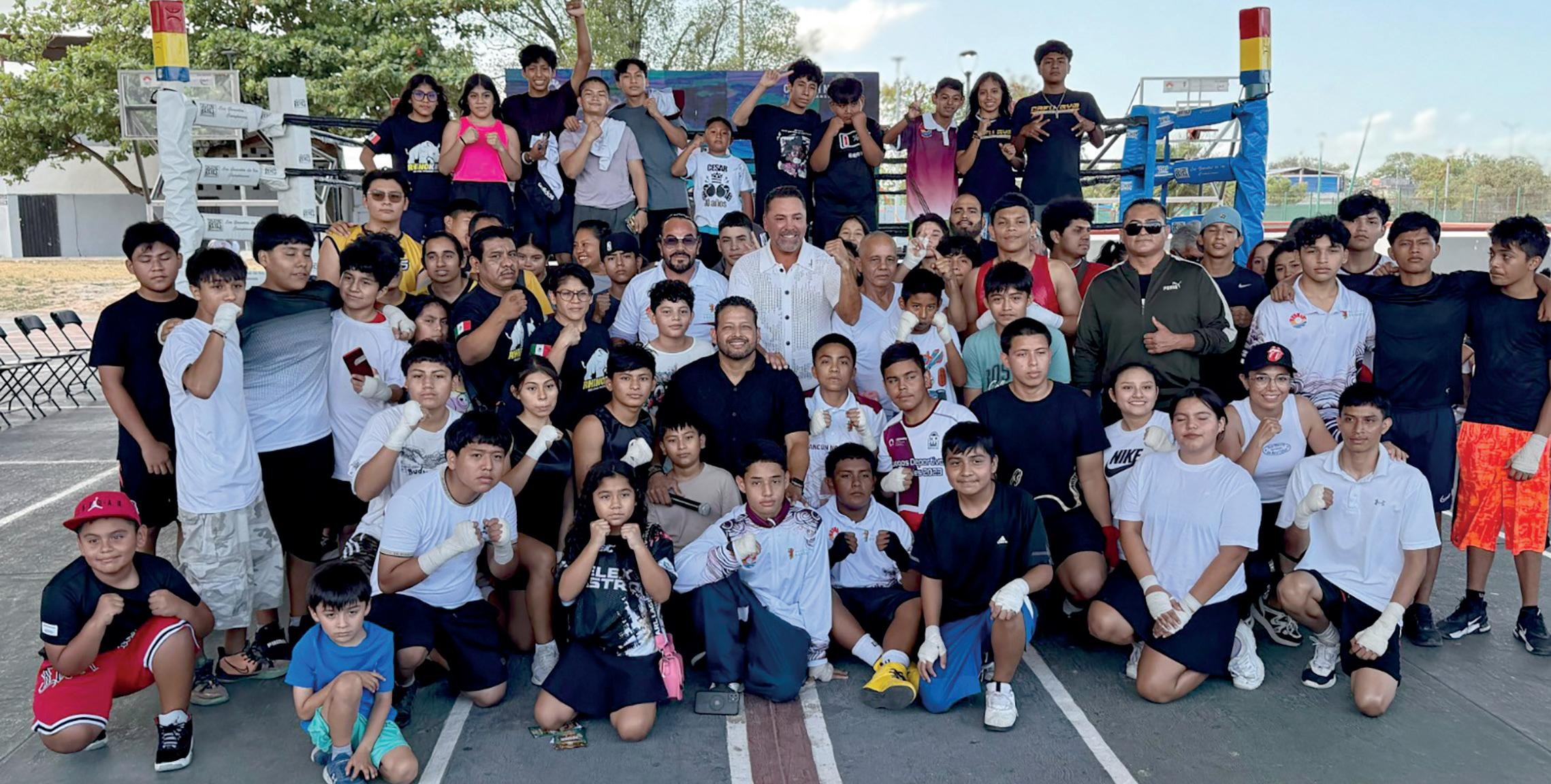 Durante su visita, el “Golden Boy” convivió con jóvenes pugilistas provenientes de distintas escuelas de box del municipio de Benito Juárez, a quienes dedicó palabras de aliento y motivación, exhortándolos a mantenerse firmes en su pasión por este deporte y a dar siempre lo mejor de sí dentro y fuera del ring.