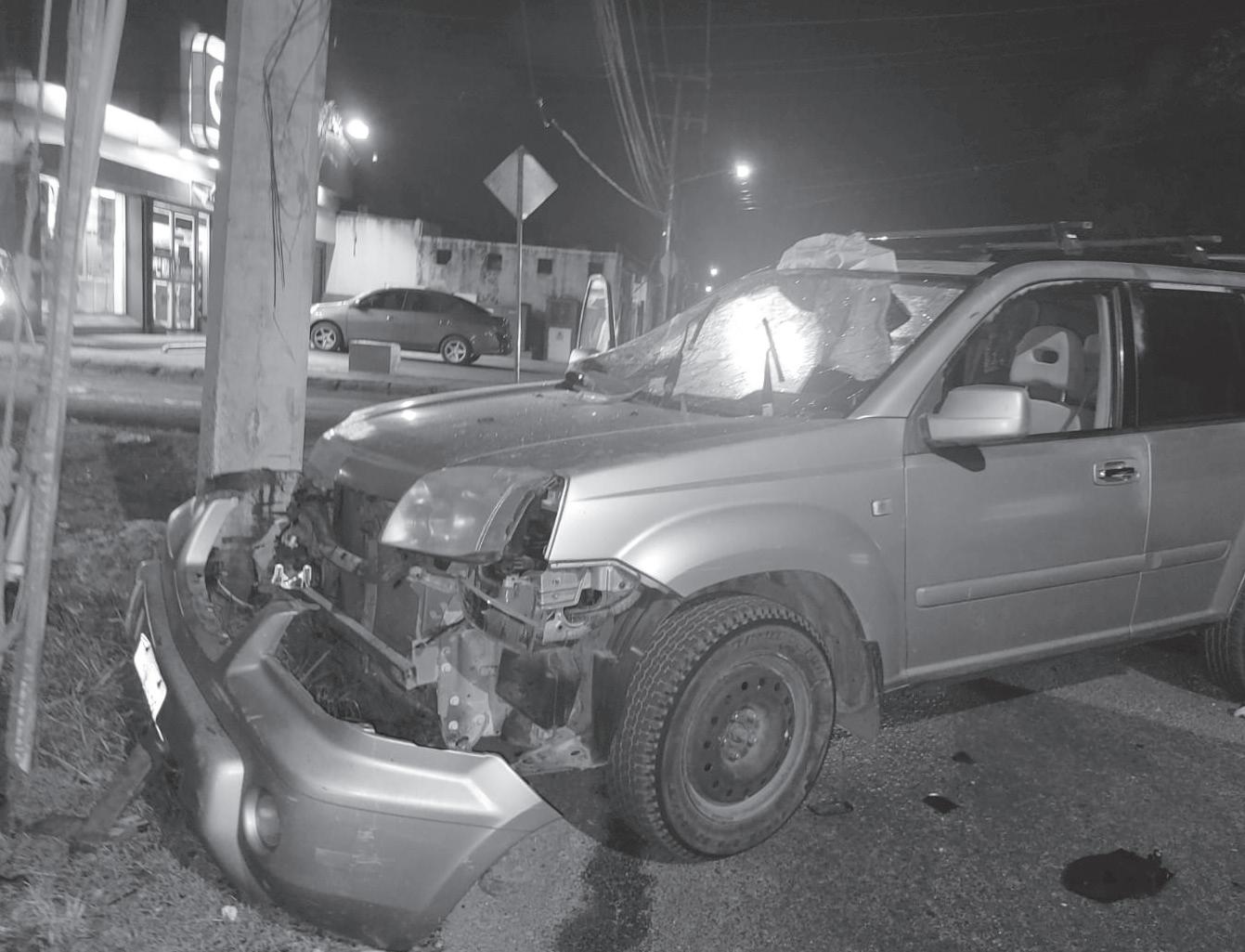 Dos lesionados fue el saldo de un accidente ocurrido en la avenida Galaxias del Sol con avenida Marabu de la Supermanzana 253, frente a una tienda de conveniencia, donde el conductor de una camioneta Xtrail de color café, no tomó en cuenta las condiciones de la vía y al perder el control de su dirección a su derecha chocó contra un poste de la CFE. El accidente ocurrió a las 01:45 horas, de ayer jueves, cuando se informó a los agentes de Tránsito que en la avenida Galaxias del Sol, en la Supermanzana 253, frente a la tienda de conveniencia, había chocado una camioneta.