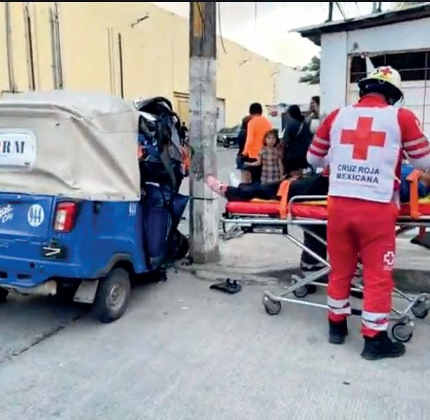 Al lugar llegaron paramédicos de la Cruz Roja, que se encargaron de trasladar a los lesionados: Gilberto J.C. (pasajero) y Fernando R.R. (conductor); el primero de los mencionados terminó ingresado en el IMSS de la Supermanzana 510 y el otro en el Hospital General. Se trata de un mototaxi de co-