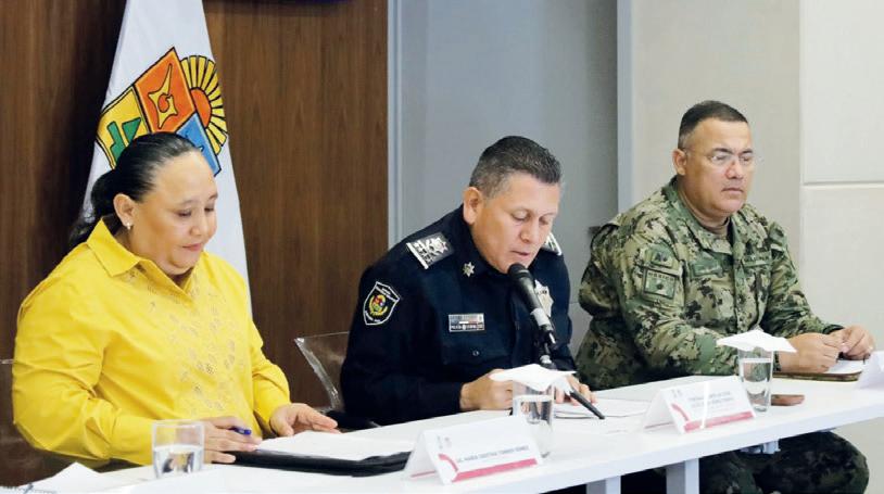 conferencia de prensa del Gabinete de Seguridad, en la que también estuvieron presentes Cristina Torres Gómez, secretaria de Gobierno; contralmirante Julio César Gómez Torres, secretario de Seguridad Ciudadana; contralmirante Juan José Zamorano Martínez, comandante de la Brigada de Infantería de Marina de la Quinta Región Naval y general de Brigada Diplomado de Estado Mayor Claudio Edmundo Huizar de la Torre, comandante de