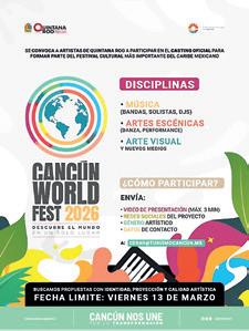 ¡Se abre el casting oficial del Cancún World Fest 2026, el festival cultural más importante del Caribe Mexicano.